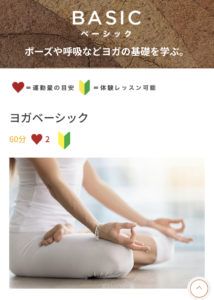 リンパリラックスヨガはハート×1.5、ヨガベーシックはハート×2 など。