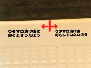 水を張ってウタマロを10回ほどプッシュして2時間ほど放置すれだけ。